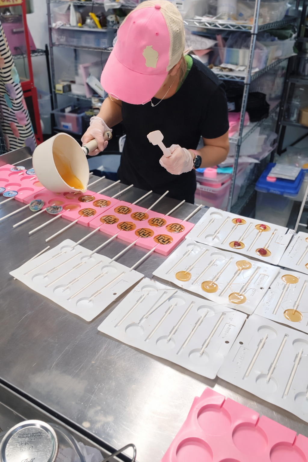At Lily’s Magical Treats, we believe a great lollipop should be more than just sweet — it should be clear, smooth, flavorful, and beautiful. Achieving that consistently takes the right recipe, careful timing, and professional techniques most people never see. Here’s a behind-the-scenes look at how we make our lollipops and why each step matters. Scroll to the end for a list of supplies to make your own! **Please note, candy making involves extremely high temperatures and should only be attempted with proper equipment and experience.** The Foundation: A Balanced Sugar Recipe For many of our classic lollipops, we start with a traditional sugar base: 2 cups sugar ¾ cup water ⅔ cup tapioca syrup This mixture is slowly heated to 300°F (hard crack stage) , creating a stable, glass-like candy that sets cleanly and holds its shape. Choosing the Right Sweetener (Especially for Edible Images) Different sweeteners behave very differently — and clarity matters. For standard lollipops , we often prefer organic cane sugar for flavor and ingredient quality. For edible image lollipops , we switch to white granulated sugar, which produces a clearer base. For ultra-clear designs , isomalt is our go-to choice. Because isomalt is less sweet than sugar, we add monk fruit to balance the flavor without sacrificing clarity. Working with Isomalt: A Different Process Isomalt behaves very differently from traditional sugar, and it requires a slightly different approach. Unlike sugar candy: No syrup is needed when working with isomalt Only a small amount of water is used — just enough to prevent scorching Isomalt is heated to a slightly higher temperature, around 311°F Many people melt isomalt in the microwave , but we prefer using an induction burner for all of our candy making. This gives us greater control over temperature and consistency, especially for larger or custom batches. One of the biggest advantages of isomalt is its stability: It can be reheated multiple times It does not recrystallize like sugar It is far less prone to burning This makes it ideal for intricate designs, edible images, and detailed finishing work. Cooling Before Flavoring (A Crucial Step) Once the candy reaches temperature, it’s removed from heat and allowed to cool slightly before adding : ~4 teaspoons natural flavoring Optional: ¼ teaspoon citric acid Optional: plant-based color Optional: sprinkles for some extra fun This preserves flavor quality and prevents bitterness. How We Make Edible Image Lollipops Our edible images are printed using food-safe inks on wafer paper with an edible printer , then cut on a food-only Cricut . We use a two-pour method : Pour a thin base layer into the mold Place the edible image once the base begins to set Seal with a top pour This protects the image while keeping it centered and clear. Customization Through Sticks, Ties & Finishing Details Customization goes beyond the candy itself. We offer: Different stick lengths Clear or bedazzled sticks for themed or upscale events Decorative twist ties, often finished with a bow for a playful touch When using plastic lollipop sticks, always wait until the candy has cooled enough before inserting them to prevent melting. Why We Prefer Silicone Molds Silicone molds: Release cleanly Support layered designs Create smooth edges Maintain clarity and consistency They’re especially important for edible image lollipops. The Finishing Touch Most People Don’t Know About After the lollipops have fully hardened, each one is finished with a light pass of a kitchen torch to: Remove tiny surface bubbles Smooth sharp edges Restore a glossy finish Why This Process Matters This method allows us to create lollipops that are: Crystal clear Smooth and polished Flavor-forward Highly customizable Durable enough for events and favors. Every detail matters when lollipops are part of a celebration. Crafted with Care, Every Time From weddings to corporate events, every lollipop we make is crafted with intention, precision, and care. If you’re interested in custom lollipops — including edible images, specialty sticks, or ultra-clear designs — we’re always happy to help bring your vision to life. Tools We Use to Make Our Lollipops (Affiliate links — we may earn a small commission at no extra cost to you) 2" round silicone lollipop molds Induction burner Thermometer Torch Pots with pour spout Heat proof silicone spatulas Wrap and twist ties Twist tie bows Clear sticks Bedazzled sticks Natural f lavors Red natural food coloring This is a great bulk option! Just mix the beet powder with a little bit of water to create a paste that you mix in to the sugar mixture before pouring. If you are doing natural colors, reds and pinks work best. Greens and blues are extremely temperamental and don't work nearly as well with the high heats. Citric acid Tapioca syrup Corn syrup works the same way Isomalt Edible printer Icing sheets These produce better colored images than wafer paper but are more expensive Wafer paper Food safe Cricut mat for use with wafer paper. Icing sheets you need a regular cricut mat as the back is lined with a plastic sheet Cricut